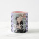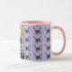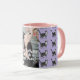 Tuxedo Chat Drôle Joyeux Danse Anniversaire Mug Tabbies dans un Arrière - plan violet. Un design photo et floral. Un must pour tout amoureux des chats !
