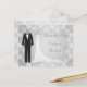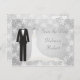 Tuxedo et Gown ensemble contre un flocon d'argent mariage arrière - plan Enregistrer la date Carte postale