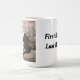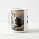 Aquarellbilder der schwarz-weißen Katze auf einem Felsen in einem Garten. Passen Sie diese Tasse mit Ihrem Namen an!