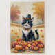 Tuxedo Katze im Herbst hinterlässt Erntedank Art