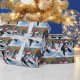 Tuxedo Katze läuft im Schnee mit Weihnachtsmütze Geschenkpapier