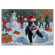 Tuxedo Katze läuft im Schnee mit Weihnachtsmütze Schneidebrett