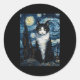 Tuxedo Katze Starry Night Moon and Stars Runder Aufkleber