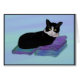 Grafische Illustration des Smokings die Katze, die auf Wurfskissen Nickerchen macht.