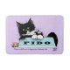 Niedliches, schwarz-weißes Tuxedo Kätzchen, das in einer blauen Hundeschale vor einem Hintergrund von lila sitzt.