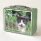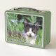 Das hübsche, schwarz-weiße Tuxedo Kätzchen (Xena) im Garten sieht auf dieser Lunchbox gut aus für jeden Katzenliebhaber