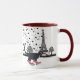 Schwarzweiss-Katze, die rote Turnschuhe in Paris-Tasse trägt