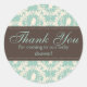 Impression damassée d'oiseau doux en aqua et ivoire avec contraste brun.