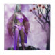 "Twilight Blossom Fairy" Dieses ätherische Charakterdesign besticht durch einen mystischen Märchenkrieger, der inmitten einer surrealen, traumhaften Landschaft stehend ist. Sie ist in einem lebhaften violetten und rosa Ensemble geschmückt, das Eleganz mit Kraft verbindet, komplett mit durchsichtigen Flügeln und naturgetreu inspiriert Accessoires. In ihrer Umgebung befindet sich ein wunderschöner, karger Baum mit blühenden rot-schwarzen Blume, die unter Vollmond in violettem Nebel gebadet werden - was das zauberhafte Ambiente der Dämmerung verstärkt.