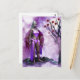 "Twilight Blossom Fairy" Dieses ätherische Charakterdesign besticht durch einen mystischen Märchenkrieger, der inmitten einer surrealen, traumhaften Landschaft stehend ist. Sie ist in einem lebhaften violetten und rosa Ensemble geschmückt, das Eleganz mit Kraft verbindet, komplett mit durchsichtigen Flügeln und naturgetreu inspiriert Accessoires. In ihrer Umgebung befindet sich ein wunderschöner, karger Baum mit blühenden rot-schwarzen Blume, die unter Vollmond in violettem Nebel gebadet werden - was das zauberhafte Ambiente der Dämmerung verstärkt.