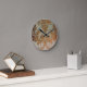 Our wall clock has Old World flair, yet is contemporary in design, allowing it to feel at home in many decor styles as a lovely accent piece. Muted grey-blue tones are married with fiery rust, gold, and bronze tones reminiscent of streaks of sunset in a fading blue sky at twilight. This design coordinates with our elegant monogrammed cloth napkins and with our Edwardian Naturalist designs. Perfect for the Steampunk enthusiast, or anyone who adores the timeless elegance of a rich brocade pattern.