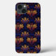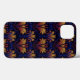 Das Produkt zeichnet sich durch ein sich wiederholendes verziertes Muster aus, das durch ein klassisches, barockes Design inspiriert wird. Das zentrale Motiv ähnelt einem stilisierten Flour-de-lis oder einem eleganten Plüschtier, das in lebhaften Gold-, Rot- und Orangetönen mit Gradienteneffekten dargestellt wird. Der Hintergrund ist ein tiefblaues Marineblau, was einen starken Kontrast schafft, der die Designelemente zum Pop macht. Das Muster hat ein luxuriöses und gemütliches Ambiente, symmetrische Details und fließende Kurven, die ihm ein ausgeklügeltes und zeitloses Aussehen verleihen.