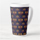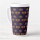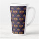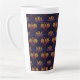 Das Produkt zeichnet sich durch ein sich wiederholendes verziertes Muster aus, das durch ein klassisches, barockes Design inspiriert wird. Das zentrale Motiv ähnelt einem stilisierten Flour-de-lis oder einem eleganten Plüschtier, das in lebhaften Gold-, Rot- und Orangetönen mit Gradienteneffekten dargestellt wird. Der Hintergrund ist ein tiefblaues Marineblau, was einen starken Kontrast schafft, der die Designelemente zum Pop macht. Das Muster hat ein luxuriöses und gemütliches Ambiente, symmetrische Details und fließende Kurven, die ihm ein ausgeklügeltes und zeitloses Aussehen verleihen.