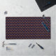 Das Produkt zeichnet sich durch ein sich wiederholendes verziertes Muster aus, das durch ein klassisches, barockes Design inspiriert wird. Das zentrale Motiv ähnelt einem stilisierten Flour-de-lis oder einem eleganten Plüschtier, das in lebhaften Gold-, Rot- und Orangetönen mit Gradienteneffekten dargestellt wird. Der Hintergrund ist ein tiefblaues Marineblau, was einen starken Kontrast schafft, der die Designelemente zum Pop macht. Das Muster hat ein luxuriöses und gemütliches Ambiente, symmetrische Details und fließende Kurven, die ihm ein ausgeklügeltes und zeitloses Aussehen verleihen.