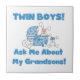 Stolze neue Großmütter mit zwei kleinen Jungs werden dieses niedliche blaue Design mit zwei Bündnen in blauer Bassinette und blauem Text mit dem Aufdruck "Frag Me About My Grandsons!" Liebe geben.