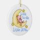 Niedlicher Teddybär schläft auf einem halbmondförmigen Mond mit funkelnden Sternen