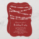 De multiples brins de lumières scintillantes accentuent cette invitation de fête sur un arrière - plan rouge canneberge.