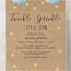 Twinkle sprinkle kleinen Stern-Einladung mit niedlichen blauen Wolken und goldenen Sternen auf Strings, auf einem rustikalen Kraftrakle-Hintergrund, ist diese niedliche Baby-Sprinkle-Einladung perfekt für alle Kleinen, die unterwegs sind. Fügen Sie Ihre speziellen Feierlichkeiten Details hinzu, um die perfekte Einladung zu schaffen. Es beinhaltet eine Buchanfrage, eine Verlosung mit dem Würfel oder eine andere niedliche Sprinkle-Reservierungskarte. Entwickelt von Thisisnotme©
