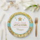 Die Teller sind in Rosa, Gold und Aqua gehalten. Sie sagen, Twinkle winzige kleine Stern wissen Sie, wie beliebt Sie sind (Name). Diese rosa und goldfarbenen Teller können auch für Geburtstagsfeiern verwendet werden. Es gibt einen funkelnd goldenen Hintergrund auf diesen Tellern und oben goldene und aqua-Sterne.