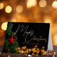 Diese prächtige Goldfolie aus dem Nicht-Foto Merry Christmas card besticht durch ein modernes goldenes Drehbuch, das an einem festlichen Weihnachtsbaum, der mit roten und grünen Ornamenten geschmückt ist, über glitzernde Lichter schwebt. Passen Sie diese eleganten Urlaubskarten für Ihre Freunde und Familie im schwarzen Nachthimmel an.