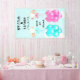 Zwei Babyduschen mit einem doppelten Mädchen und einem kleinen Doppelbett unter rosa und blauen Ballonbuketten. Zum Personalisieren bearbeiten Sie Text, um Namen hinzuzufügen.