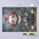Ein gotisches Zirkusdesign mit einer eindringlichen Clownpuppe mit durchdringenden goldenen Augen, umgeben von unheimlichen Schädeln und surrealen Details. Ideal, um eine dramatische, düster whimsikale decoupage art zu schaffen, die Aufmerksamkeit erregt." Wählen Sie die Größe, die am besten für Ihre kreative Vision funktioniert, oder kontaktieren Sie uns, um etwas einzigartiges für Sie zu entwerfen. Sind Sie Händler oder Ladenbesitzer? Lass die Arbeit zusammen! Erfahren Sie hier auf Zazzle oder kontaktieren Sie uns über unsere Facebook-Seite DecoupAngel, um exklusive Vorteile und personalisierte Zusammenarbeit zu erkunden
