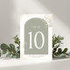 Add a refined and cohesive touch to your reception with this elegant Christian wedding table number card from the Two Are Better Than One collection. The design features a soft sage green arch framing the table number, creating a modern yet timeless focal point for each table.