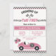 Niedliche "Growing up Two Fast" 2. Geburtstagsrennen Einladung in Rosa und Grau. Passen Sie die Einladung mit dem Namen, dem Datum, der Uhrzeit und dem Ort des Party Ihres Kindes an.
