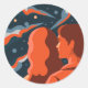 Two Figures Contemplating an Abstract Cosmic Scene Runder Aufkleber