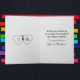 Congratulations on your wedding! May the love you share today quote, sentimental card for a gay couple who just wed. Simple artsy line art showing two grooms getting married holding hands. Two hears with a rainbow inside on the inside of card.