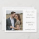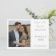 Design features the photo you provide as main design displayed against a white background and framed by an elegant, silver-colored border. To the right of photo, your text containing heading, names and city & state of wedding are displayed in a slightly darker silver font.