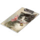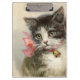 Vintage illustration of two cute little Victorian kittens with pink ribbon and bell.