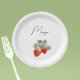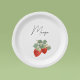Two Red Strawberries with Leaves & Flowers | Fruit Pappteller