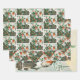Vintage Christmas illustration of two little robins sitting on a fence with holly berries in the snow.
