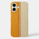 Get the sophisticated look and feel of premium leather with this printed phone case. The design features a realistic, textured print of two panels of faux leather—one a rich tan/mustard yellow and the other a soft cream/off-white. The panels are divided by a detailed line of visible, high-contrast orange stitching. Perfect for those who prefer a classic, rugged, and elegant accessory without the bulk of real leather.