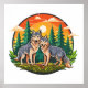 Two wolves in the forest with the sun in the background, couple of wolves in love