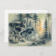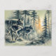 Two wolves running through the forest at sunrise, illustrated in soft charcoal and pastel tones, capturing the peaceful beauty and energy of the morning wilderness.
