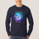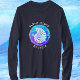 Tybee Island, Georgia Seashell Shirt. Eine gut aussehende Muschel ist gerahmt in einer farbenfrohen Kugel von lebendiger Blues, Purpur und Grüntönen.