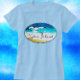 Dieses Shirt an der georgischen Küste zeigt eine ruhige Strandlandschaft. Über den schönen Ozeanwellen stürzt eine Möwe hoch. Der Himmel ist ultramarinistisch und verschmilzt mit dem aqua-blauen Wasser. Tybee Island, in dunkelblauer Schrift, liegt unter dem majestätischen Vogel. Der goldene Sand ist warm, und man kann sich vorstellen, dass die Sonne auf das Wasser scheint. Dieses Kunstwerk stammt aus einem Foto, hat aber jetzt das Aussehen einer friedlichen Aquarellmalerei.