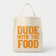 Lustige Lebensmittelgeschäfttasche für einen Mann mit Slogan Typ mit der Nahrung.