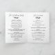 Elegantes gefaltetes Hochzeitsprogramm in Schwarz-Weiß-Typografie-Design mit einem Lorbeer-Monogramm und schönen Schriftart. Typografisches Hochzeitsprogramm mit einem grünen Monogramm und schönen Schriftart und einem Foto des Paares. Foto Hochzeitsprogramm mit einem eleganten Monogramm und schönen Schriftart und Gründetails in schwarz auf weißem Hintergrund.