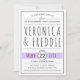 Moderne Hochzeitsfeier mit einem Vintagen Flair in Schwarz-Weiß-gezeichnet Stil, hervorgehoben mit einem schönen lila Akzent Lavendel. Die Einladung zeigt Ihren personalisierten Text in elegantem Schwarz auf weißem Hintergrund, wobei das Veranstaltungsdatum auf einem bezaubernden Lavendelbanner angezeigt wird. Auf der Rückseite schmückt ein zartes Muster weißer Kreuze die beruhigende Lavendel-Kulisse und verleiht dem Gesamtbild eine Touch Eleganz.