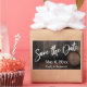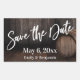 Typografie Save the Date Brown-Holzfass Rechteckiger Aufkleber