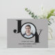 Cette photo moderne Graduation Faire-part Card comprend une seule photo et le mot JOY dans la typographie stylisée. Facilement personnalisable avec votre photo et vos détails.