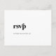 Cette carte postale RSVP est idéale pour un simple mariage. Le design minimaliste noir et blanc présente une police rétro mais contemporaine, avec une atmosphère bohème rustique unique. Parfait pour toute saison. Gardez-le minimal, en l'état, ou ajoutez vos propres graphiques et illustrations. Créez votre liste d'invités mariages et votre liste de chansons de piste de danse tout à la fois ! Cette carte postale de réponse mariage demande si les invités pourront assister à votre mariage, et aussi quelle chanson les amènera à danser.