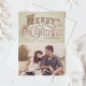 Carte photo de Noël personnalisable avec typographie occidentale sur faux arrière - plan en papier vintage.