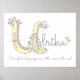 Hübsches U monogramm Art Name Poster perfekt für ein Mädchenschlafzimmer oder Spielzimmer in Grautönen, Weiß, Gelb, Rosa und lila. Personalisieren Sie mit dem eigenen Namen Ihres Kindes, beginnend mit U, und Name bedeutet für eine wirklich personalisierte Touch für das Kinderzimmer oder Kinderzimmer, dieses Beispiel ist für den Namen U Ulrika Powerful und wohlhabend mit einem romantischen Soul. Niedlicher Plakatdruck ideal für ein neues Baby-, Taufen- oder Babyduschgeschenk. © Unique U monogram Herzen und Blume zeichnend Beschreibung und Grafikdesign von Sarah Trett. www.sarahtrett.com für www.mylittleeden.com