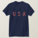 USA in rot-weiß Buchstaben Stil Schriftart, auf einem Navy T - Shirt. Gut für die ganze Familie.