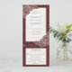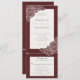 Blumenweiße Pappkuchen auf samtrot strukturierten Hintergrund Hochzeitseinladung Kombination. Die Antwortkarte ist eine abgeschnittene Postkarte mit Wahlmöglichkeiten. Eine moderne, alles in einer Lösung, um zu verhindern, dass die beiliegende rsvp-Karte versehentlich unter den Kühlschrank kommt. Auf der Rückseite der Einladung gibt es eine optionale Details Information. *Das Design kann mit verschiedenen Schriftart, Farben oder Papiertypen personalisiert werden.