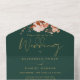 Alles in einer Hochzeitseinladung mit Herbst rustikalen Blumen und eleganter goldkalligraphischer Schrift Typografie auf einem smaragdgrünen Hintergrund. Die Einladung enthält zusätzliche Gastdetails und eine perforierte RSVP-Karte, die für Sie individuell adressiert oder verlassen werden kann, damit Sie die Adressdaten Ihres Gastes handschreiben können. Entwickelt von Thisisnotme©